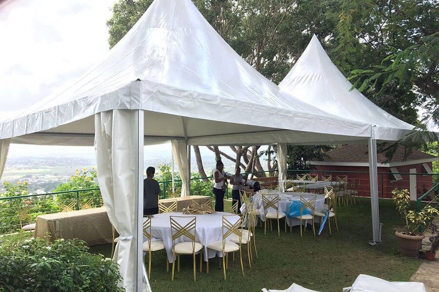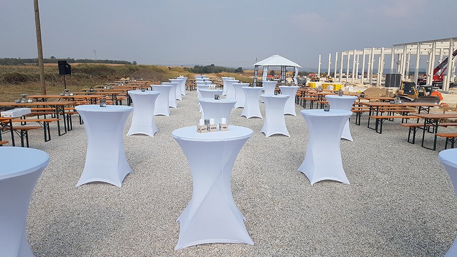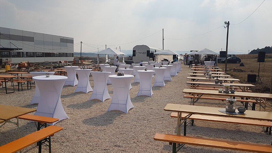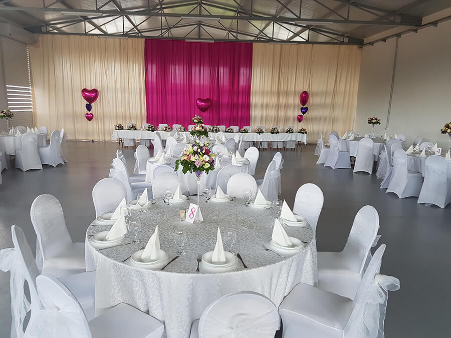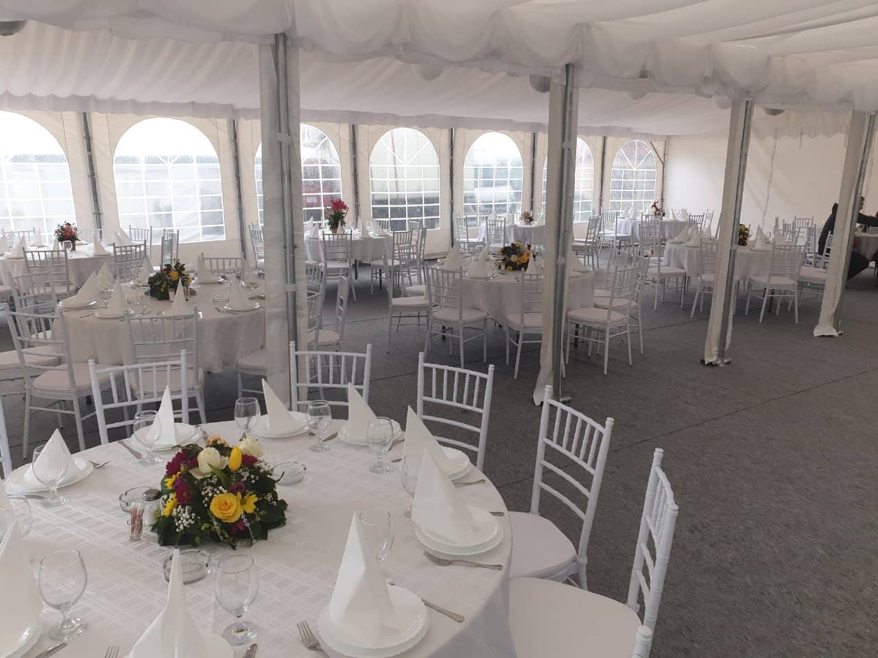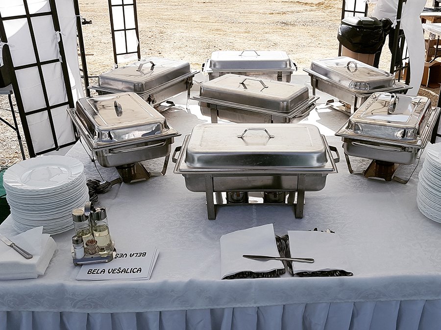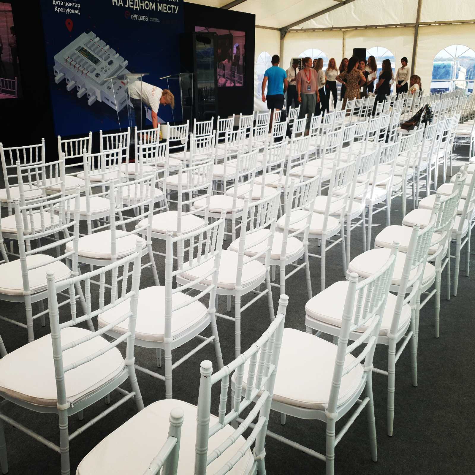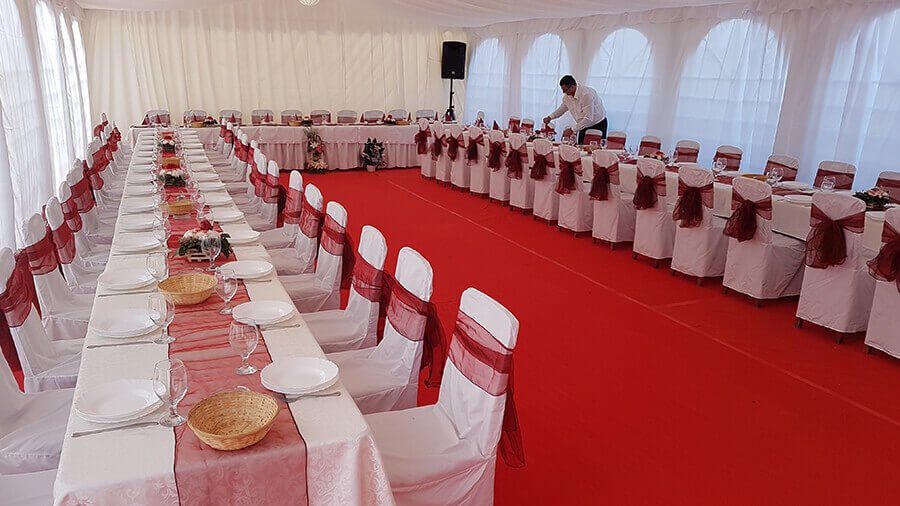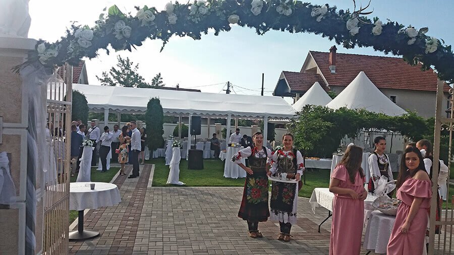 U ponudi su kvalitetni, elegantni, beli šatori, modernog dizajna, čija je dužina prilagodljiva Vama i Vašim potrebama, kao i mogućnostima prostora na kome želite da postavite šator. Kapaciteti šatora su od 80 do 220 sedećih mesta. Svi šatori se mogu urediti i dekorisati prema vašim željama.
