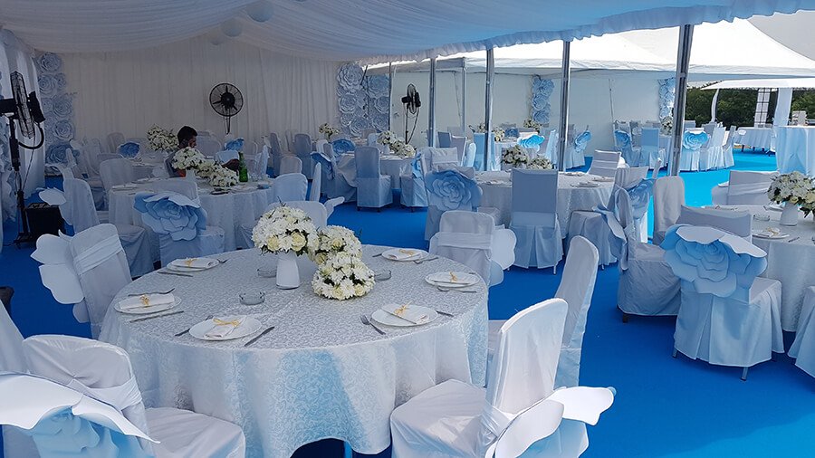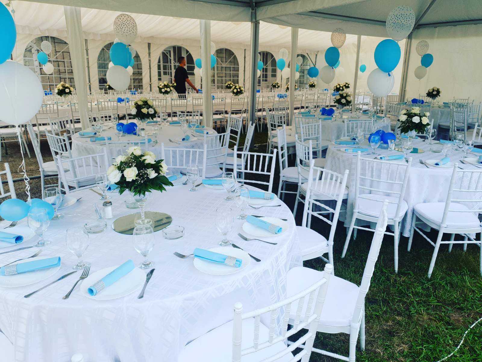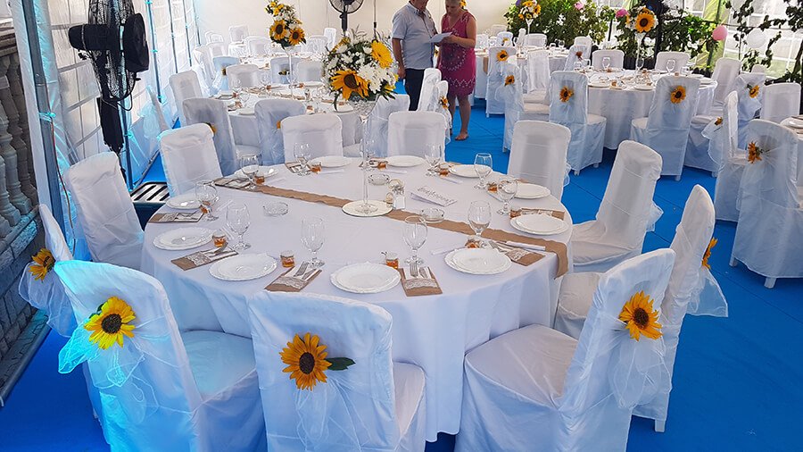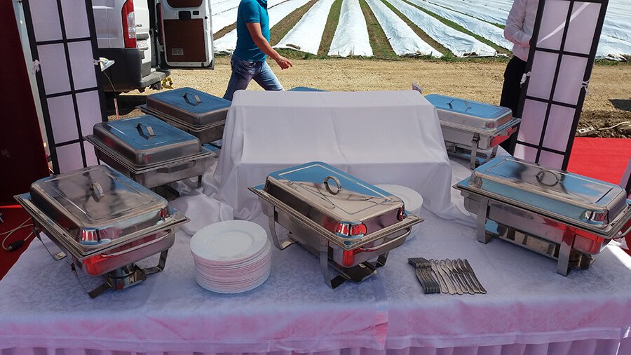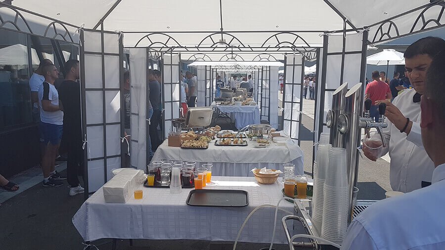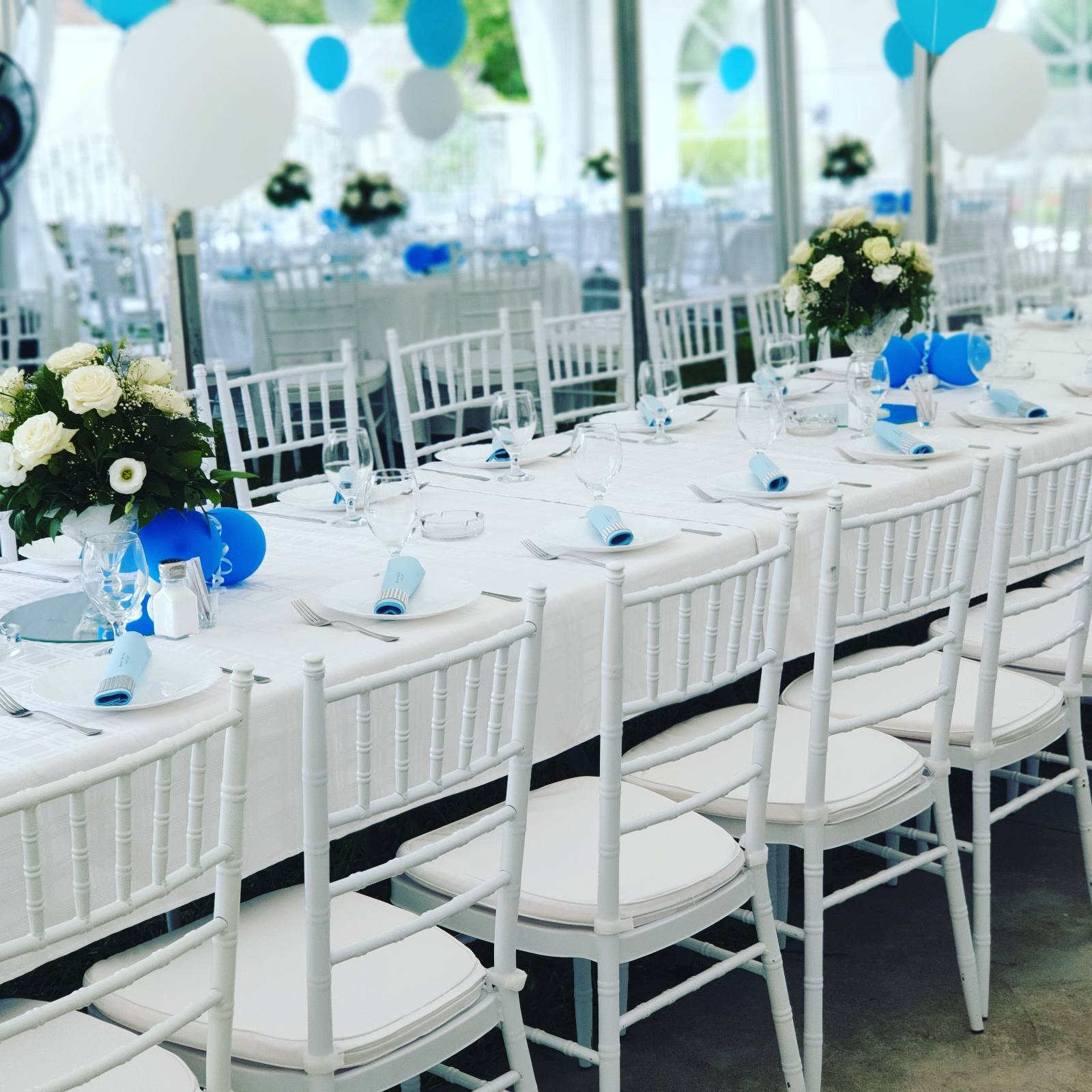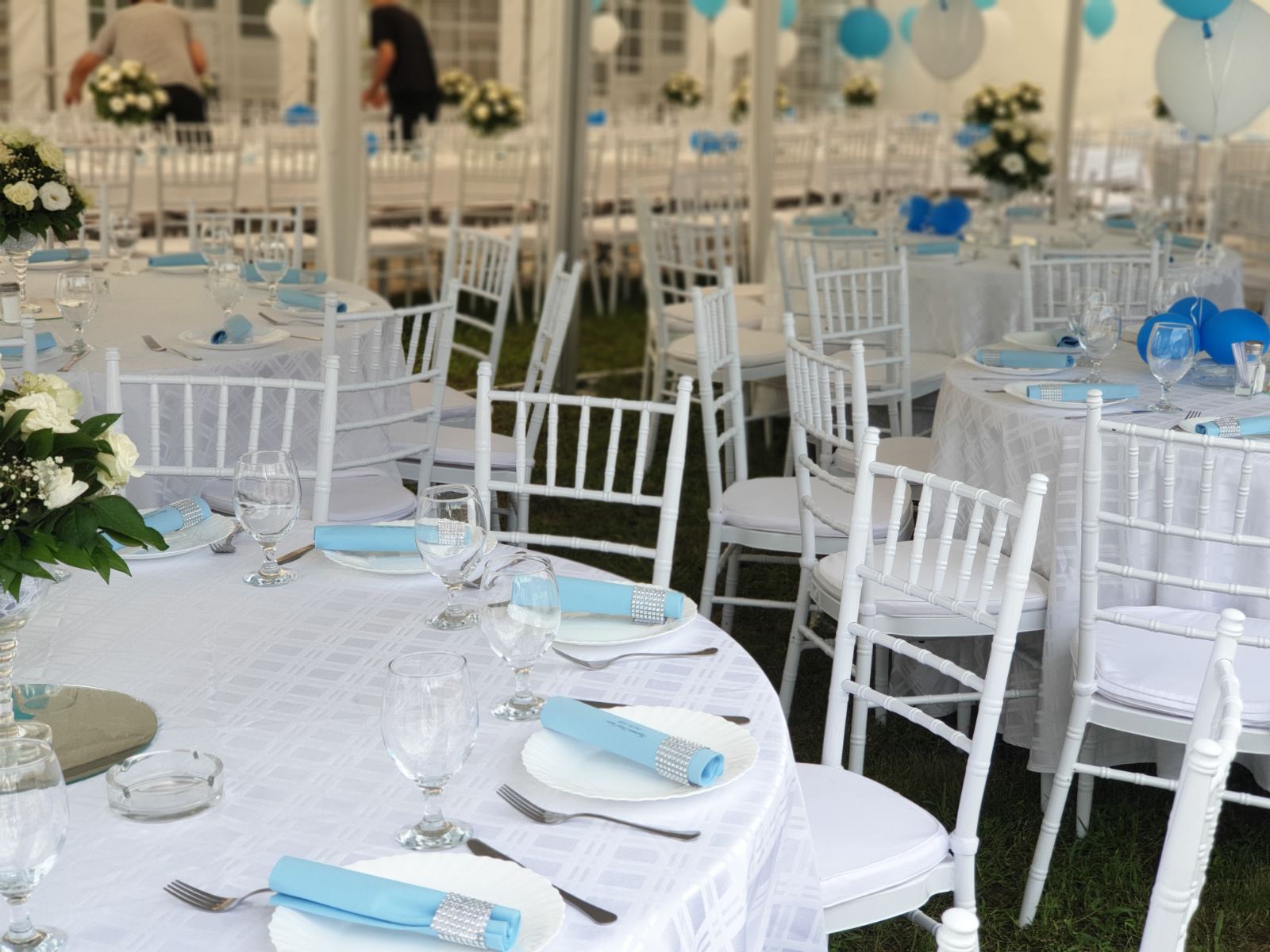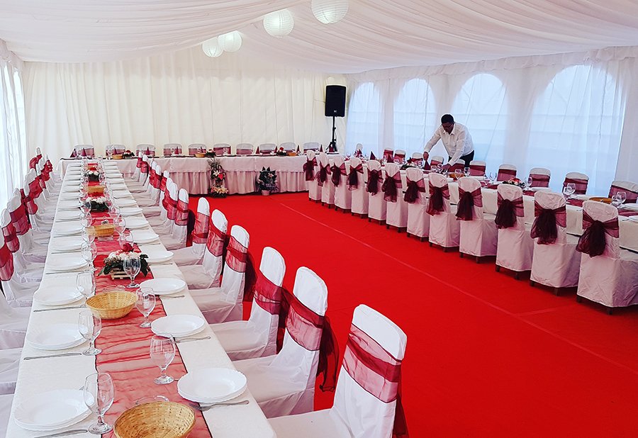 U ponudi su kvalitetni, elegantni, beli šatori, modernog dizajna, čija je dužina prilagodljiva Vama i Vašim potrebama, kao i mogućnostima prostora na kome želite da postavite šator. Kapaciteti šatora su od 80 do 220 sedećih mesta. Svi šatori se mogu urediti i dekorisati prema vašim željama.